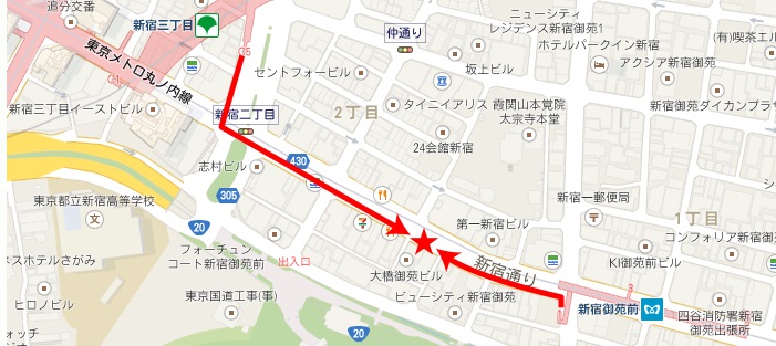 3-minute walk from Shinjuku-gyoemmae Station, Exit 1